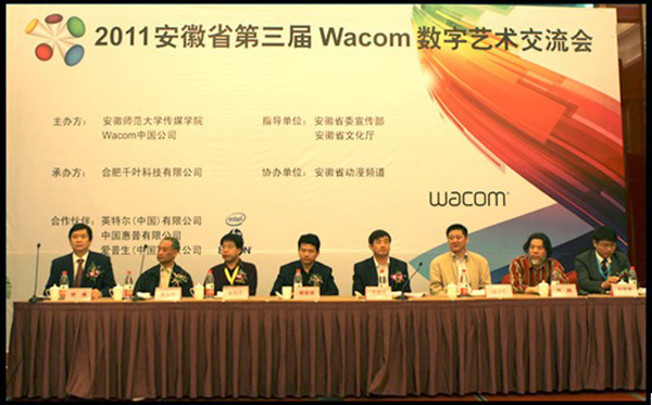 此次活动由安徽省委宣传部、安徽省文化厅指导组织,由安徽师范大学传媒学院与Wacom中国公司共同主办,来自全省60所高校的专家学者、CG业界精英、专家委员会讲师以及企业代表们共200多人参加了会议。大会开幕式由安徽师范大学副校长王绍武致辞,文化厅产业处处长郭宏斌针对我省未来动漫产业的发展和高校人才培养发表重要讲话。此次交流会是贯彻十六届七中全会和省第九次党代会精神的具体行动,对于优化高校专业结构、加快动漫人才培养有着重要的意义。交流会历时两天,在交流会上,代表们针对影视动画、游戏制作、环境艺术等领域的技术应用、教学实训、发展经验等方面的内容畅所欲言,发表了自己的独特见解。特邀嘉宾李剑平教授和晓欧教授还结合中国动画艺术与教育的问题同大家进行了探讨并与大家分享了自己的艺术与梦想。中影集团电影制作基地总经理王亚伦先生在交流会上,畅谈了现在影视业所需人才应具备的素质。
