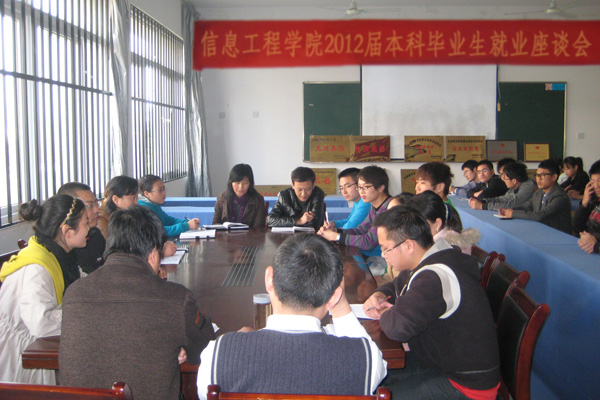 为扎实做好信息工程学院2012届本科毕业生就业工作,加强本科就业工作的内涵建设,信息工程学院本着人性化服务理念,对本科班级进行调查摸底,于11月11日中午召开2012届本科毕业生就业座谈会。信息工程学院行政副院长钱颜娇、信息系统与信息管理系副主任、计算机科学与技术系副主任、各系骨干教师、行政秘书、本科毕业班辅导员老师及各班级代表参加座谈会。座谈会上,毕业生代表就业思路清晰、心态积极,令人欣慰。