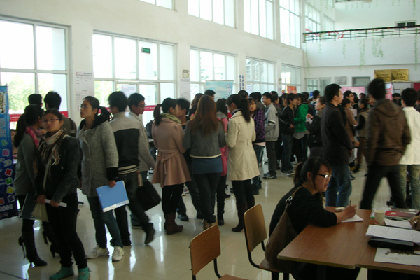 据了解,本次招聘会为本年商学院校园招聘会规模最大的一次,进场企业突破30家,提供就业岗位200多个,涉及金融、市场、财务、贸易、物流等数十个行业,市场营销、财务管理、金融等专业人才紧缺。企业的热情“引爆”了学生的参与度,当天共有600多人进场找“饭碗”。