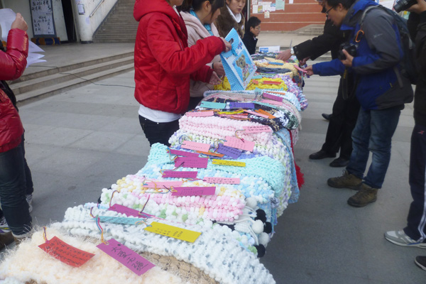 据必赢76net线路官网青年志愿者协会会长黄影介绍,从 11月1日起,志愿者们就开始进班宣传织围脖活动。织围脖很有意义,同学们自己买线、自己编织,围脖不仅是一份爱心的传递,也可以锻炼同学们的动手能力。“同学们很积极很感兴趣,男同学尤其热情。男同学基本上不会织,他们都主动向女生请教,我们学校收集的围脖中,男生织得比较多。”黄影微笑着告诉记者。