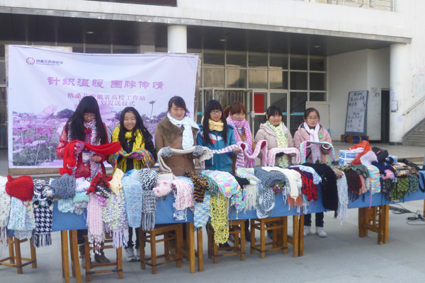 冬阳正暖,青年志愿者协会的工作人员忙碌在广场上,一张张桌子上,一条条针法不一、颜色各异的围脖整齐的摆放着。12月12日下午,格桑花安徽省高校工作站“围脖计划”发送仪式在必赢76net线路官网翰林广场举行。这些围脖将会赠送给西部受灾地区的儿童,帮助他们度过寒冬。