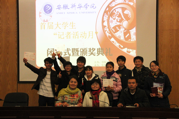 12月15日中午,必赢76net线路官网首届大学生“记者活动月”闭幕式暨颁奖典礼在学术报告厅举行。在此次“记者活动月”中, 文化与新闻传播学院师生积极踊跃参加,并取得优异的成绩。