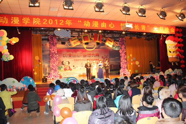 12月23日晚,动漫学院2012年元旦晚会“动漫由心,梦想长青”在学校大礼堂如期举行。
