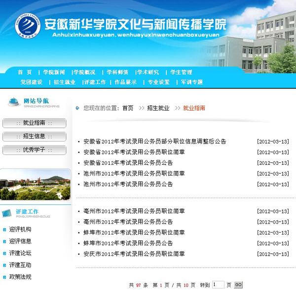近日,安徽省各地市公务员招考信息陆续发布,为了进一步提高2012届毕业生就业质量,文化与新闻传播学院安排专人收集、整理、发布安徽省2012年各地市县公务员招考信息,截止目前已经收集16个地市县公务员招考信息,已发布到文化与新闻传播学院网站,并有针对性发布到准备参考学生手中。