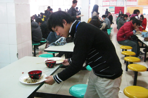 活动中,土木与环境工程学院设置了大幅的宣传标语,大力开展宣传教育,引导同学们在3•15消费者权益日做一个“文明”的消费者。团总支学生会成员以“文明就餐、礼貌用语、劝说有理、以身作则”为工作原则,分成两组在食堂内进行“文明就餐”的引导。一组引导同学们自觉排队,有序购买饭菜;另一组引导同学将餐盘送回回收点,并在回收点帮助工作人员及时清理。通过工作人员的广泛宣传和有效监督,文明就餐取得显著的效果。