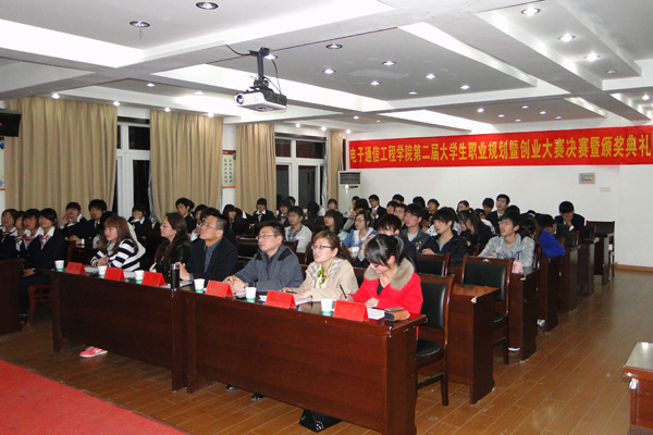 电子通信工程学院教学副院长卢胜、招生就业办公室副主任李洁、电院行政副院长操宏华及必赢76net线路官网2011年在“昆山花桥杯”第六届安徽省大学生职业规划设计大赛暨大学生创业大赛中获金奖的两位选手参加仪式,并对参赛选手进行提问和点评。