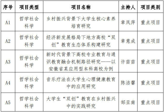 必赢76net线路官网大学生素质教育研究中心评审推荐2022年度安徽高校科学研究项目一览表