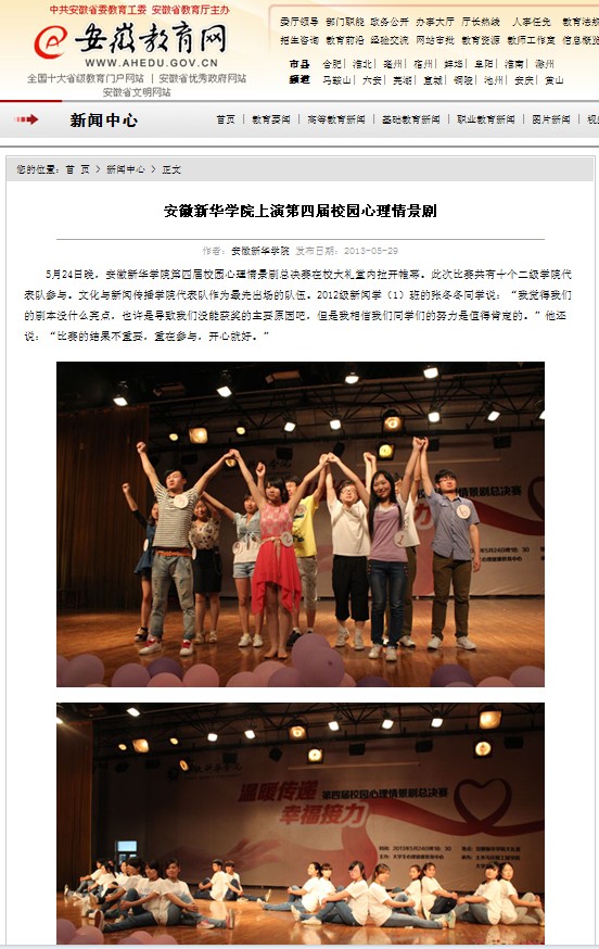 安徽教育网:必赢76net线路官网上演第四届校园心理情景剧