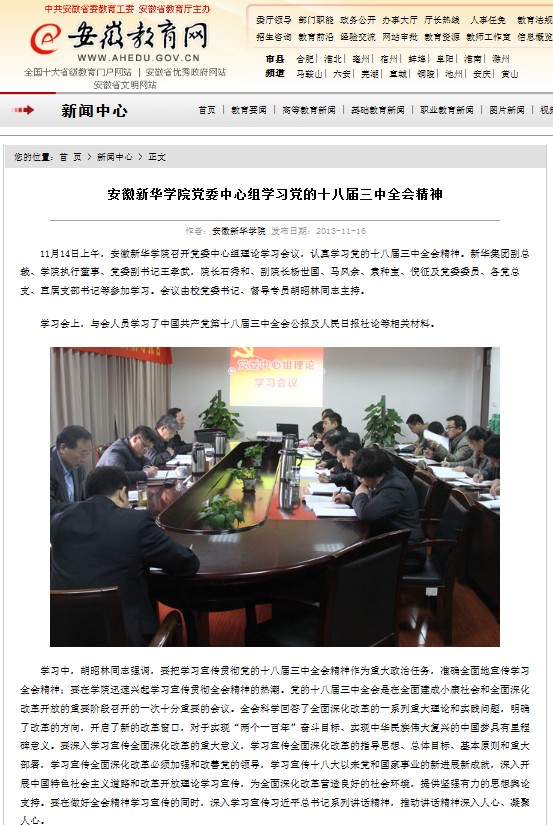 安徽教育网:必赢76net线路官网党委中心组学习党的十八届三中全会精神