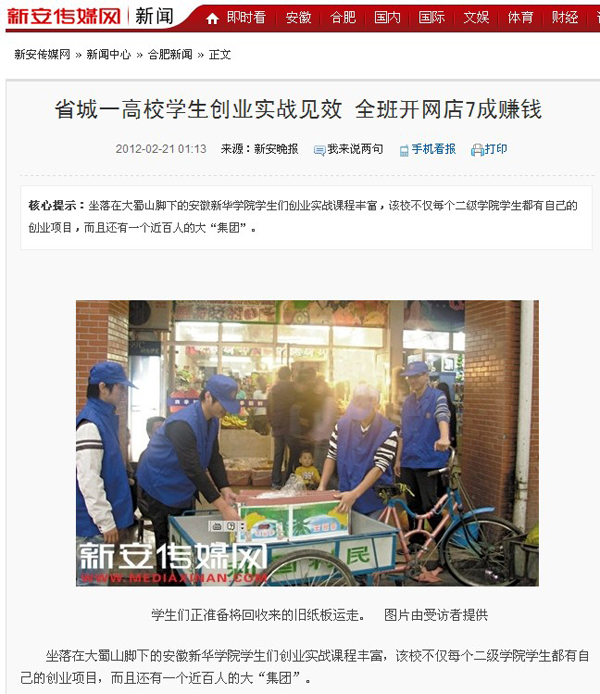 新安晚报:全班开网店 7成赚了钱